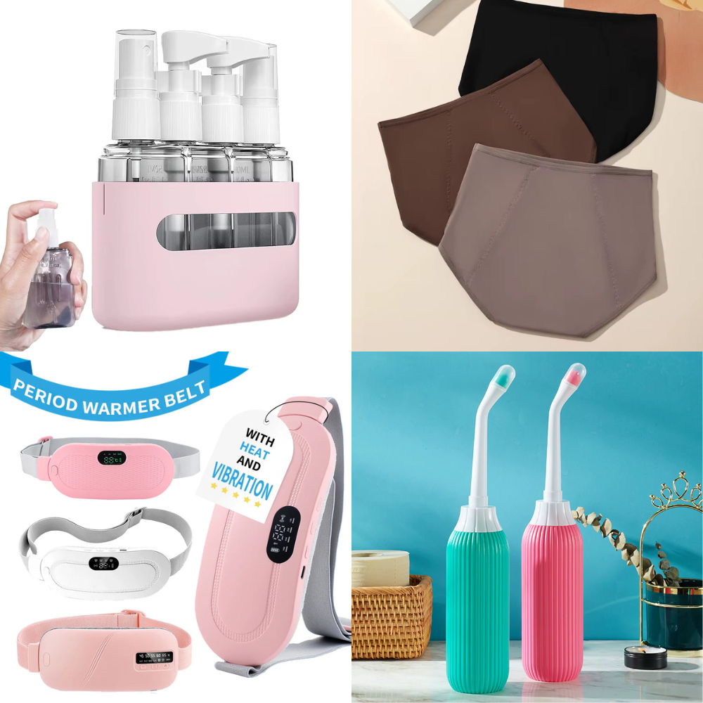 Shop travel hygiene essentials for women—portable bidets, toilet seat covers, and mini...